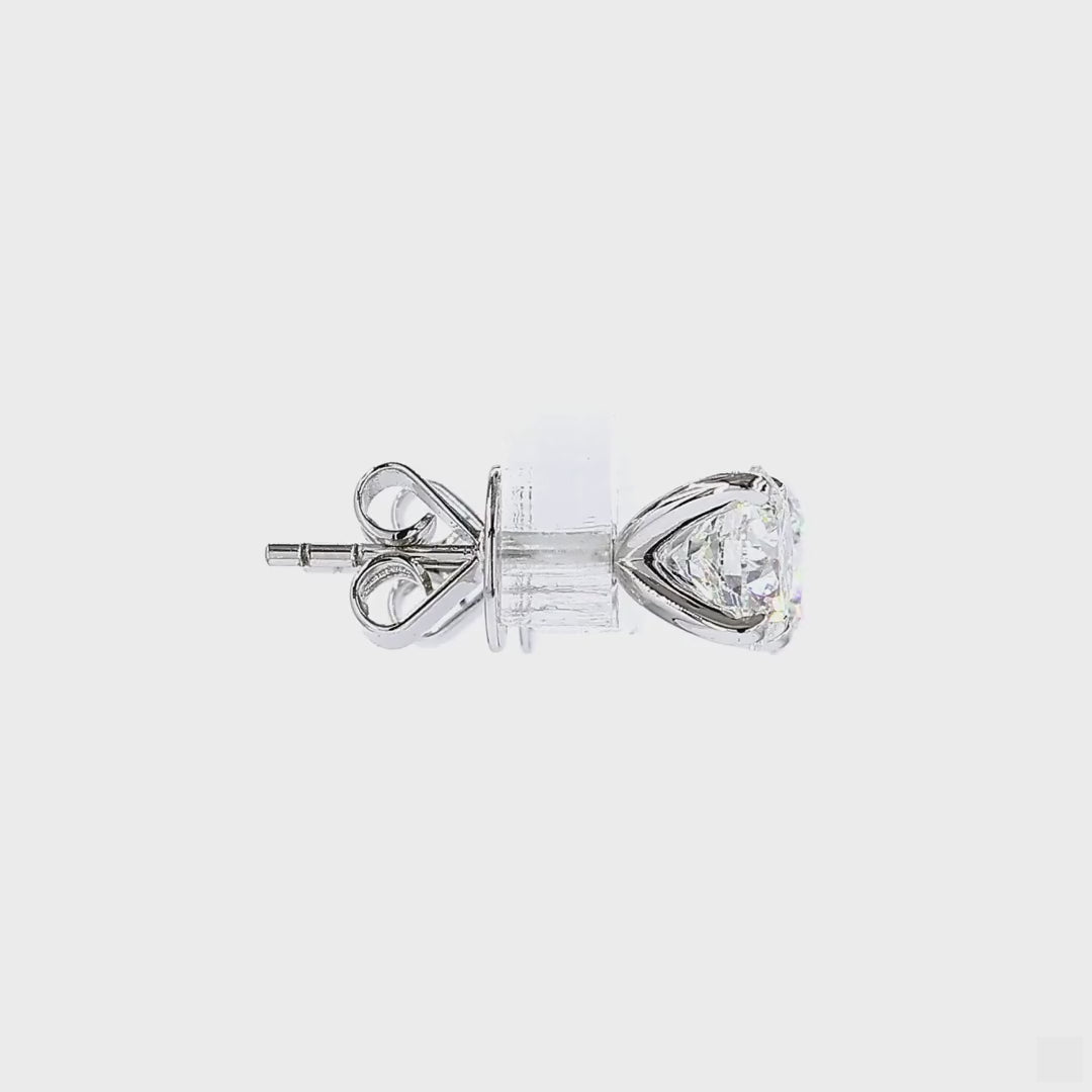 Discover tour 4 Prongs Solitaire Lab-Grown Diamond Earrings set in 18K white Gold, featuring two exquisite round brilliant-cut diamonds, each weighing 1.51 ct. These Diamond earrings exude a classic charm that enhances any outfit.