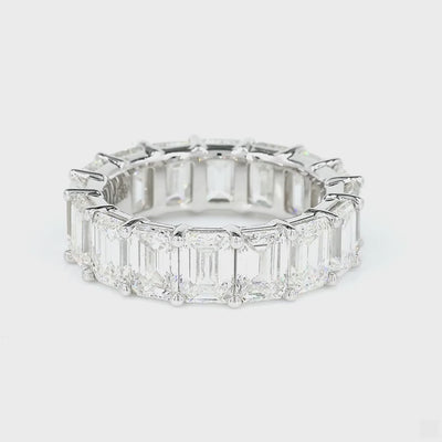 This eternity band is crafted from 18K white gold and features a selection of emerald-cut, lab-grown diamonds. Each stone is secured in a precise prong setting, designed to maximize light and enhance the diamond's natural clarity.