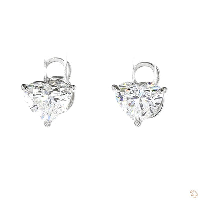 This pair of lab grown diamond stud earrings is crafted from 18K white gold. The design features two heart-shaped, lab-grown diamonds with a combined total weight of 3.17 ct.