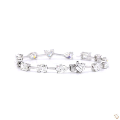 Featuring a blend of mixed shape diamonds set in 18K gold, this bracelet offers a stylish and sophisticated look. Set with lab diamonds ranging from 0.40-0.75 ct per diamond With a total carat weight of 8.02, it brings a touch of luxury to any outfit. Designed with attention to detail, this piece is ideal for those who value timeless elegance and the beauty of mixed diamond cuts.