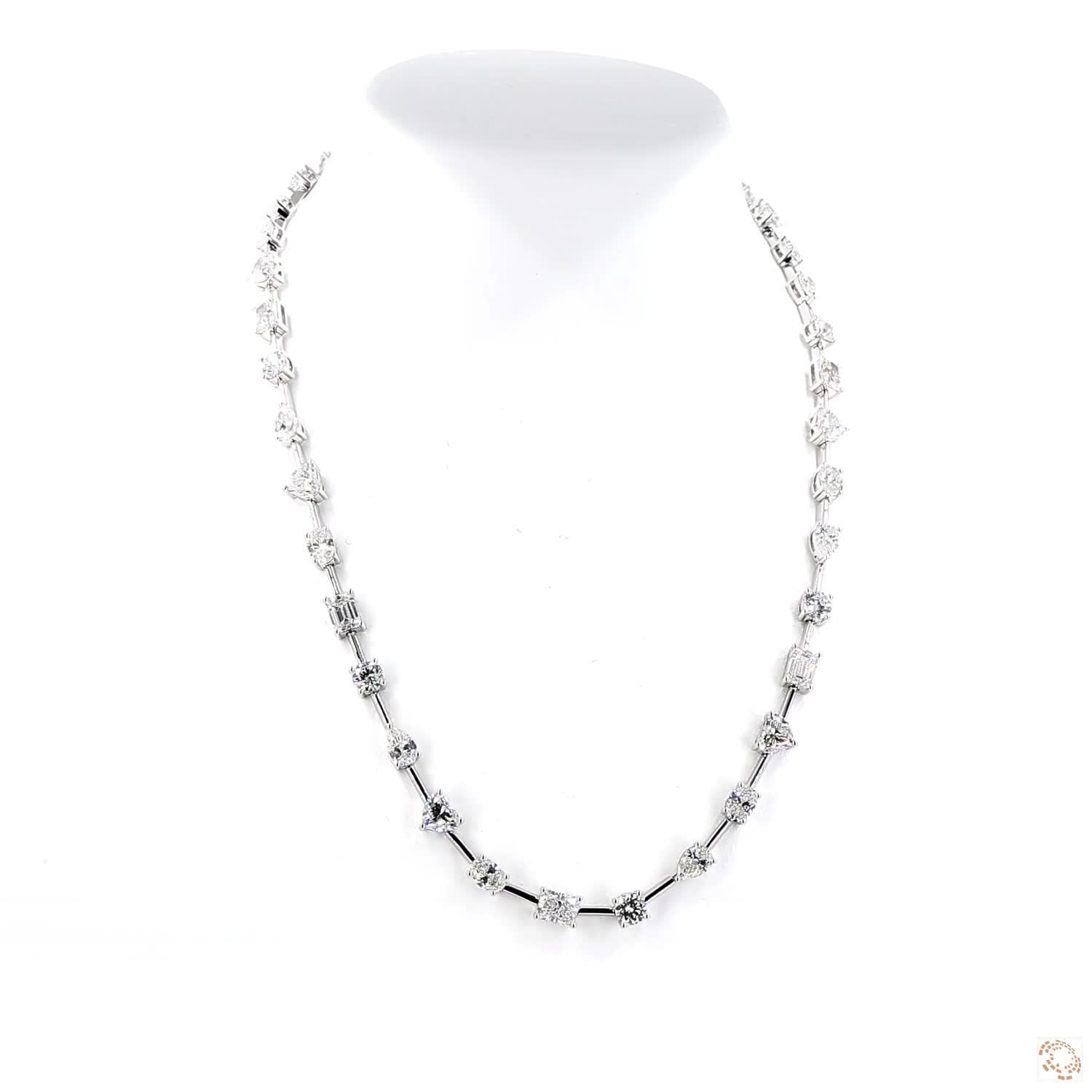 Crafted with a selection of mixed shapes of lab-grown Diamonds, this Diamond Necklace features 15.05 carats of mix cuts set in 18K white gold. This beautiful Diamond is the definition of luxurious elegance and a great addition to any collection, whether it is a birthday gift or a celebration of special moments in life. With a size of 15.5", this lab-grown Diamond necklace is the perfect addition to bring simplicity and elegance to any outfit.
