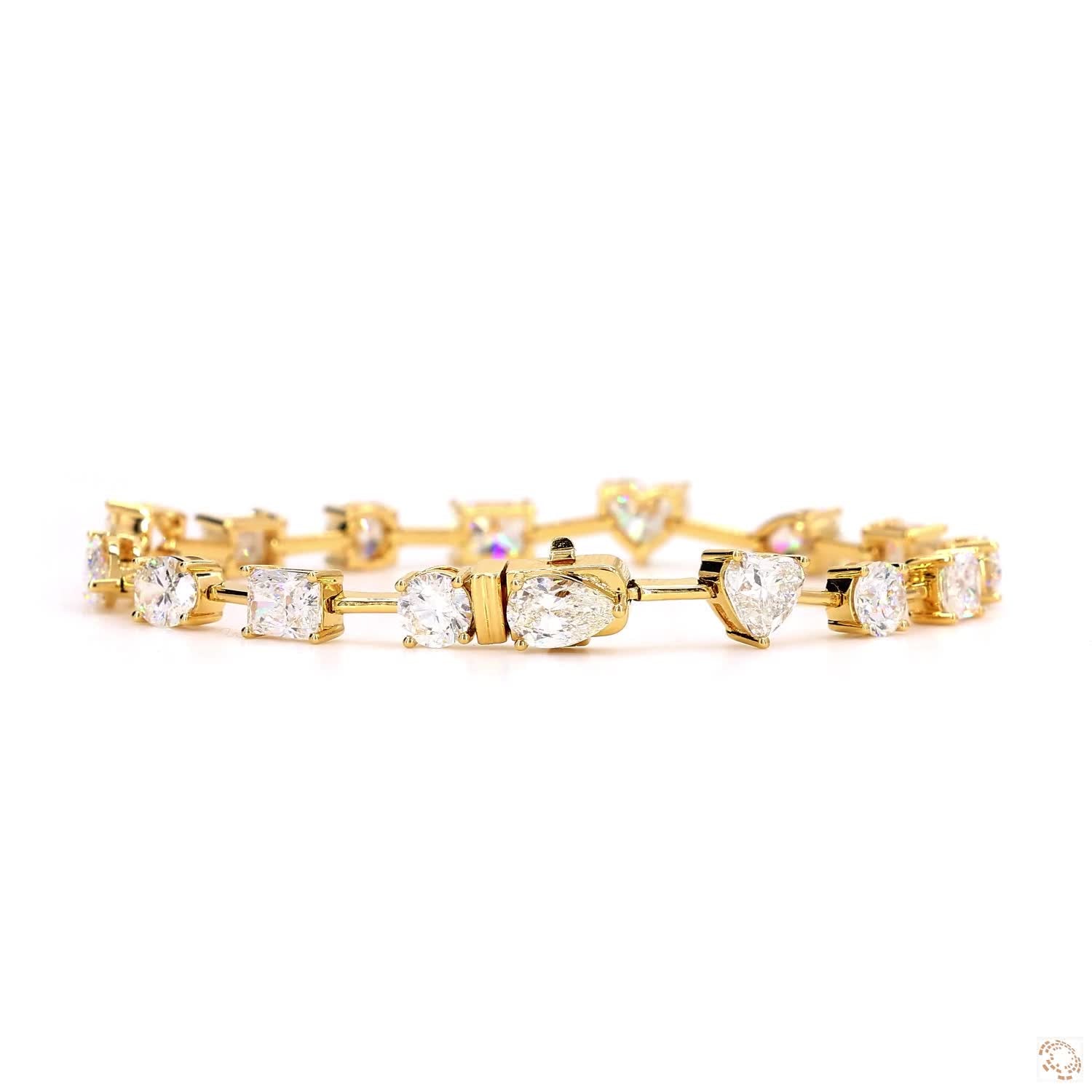 This stunning bracelet showcases a captivating mix of diamond shapes ranging from 0.40-0.70 ct per diamond, totaling 8.51 carats. The combination of different cuts creates a visually striking effect, highlighting the brilliance and fire of each stone. Set in 18K yellow gold, this piece adds a touch of classic sophistication to any outfit, perfect for those who appreciate the beauty of exceptional diamonds.