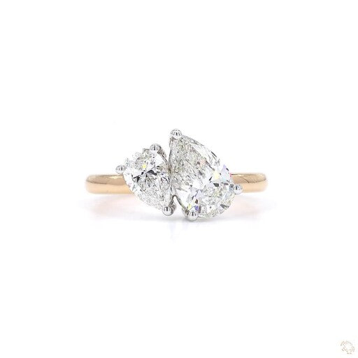 This stunning Toi et Moi cocktail ring features two pear-shaped lab-grown diamonds, both set in 18K yellow gold. This elegant ring is perfect for adding a touch of sophistication to any evening look, whether worn as a statement cocktail ring or a unique engagement piece.